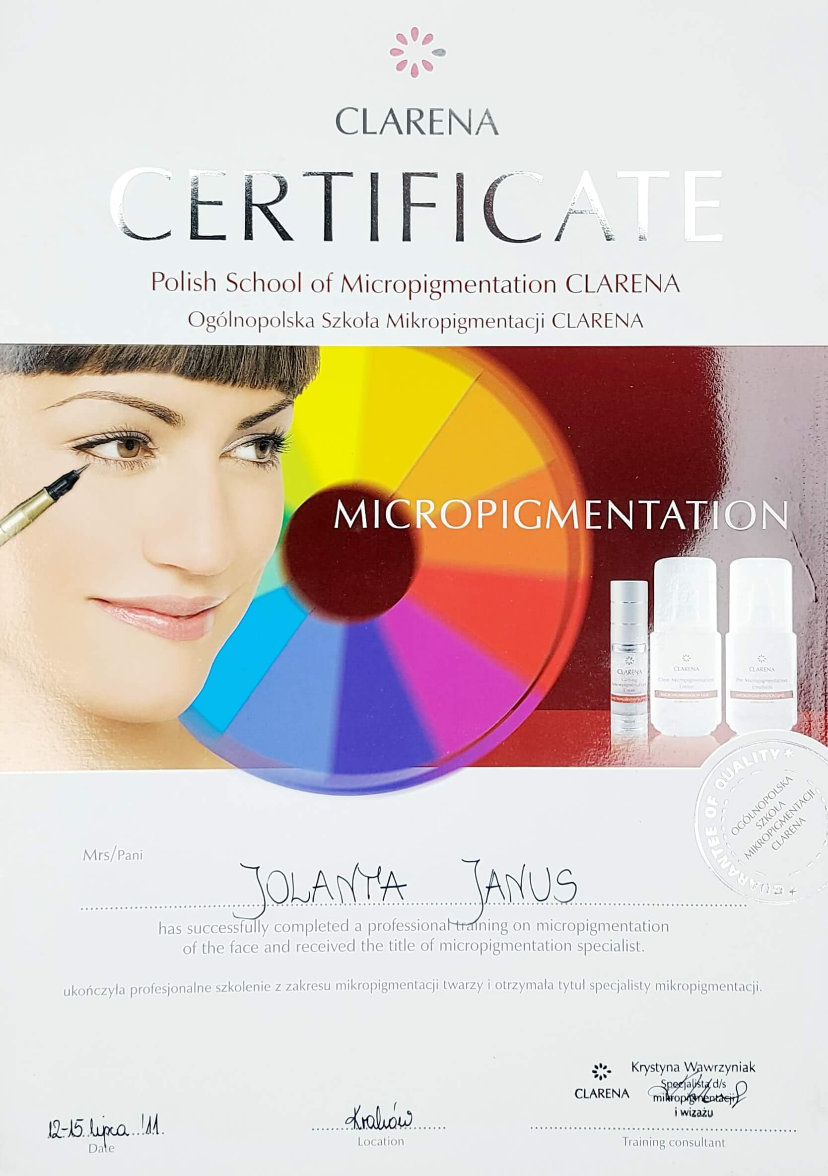 Kosmetologię studiowałam na Krakowskiej Wyszszej Szkole Promocji Zdrowia. Stale się szkolę i podnoszę swoje kwalifikacje.