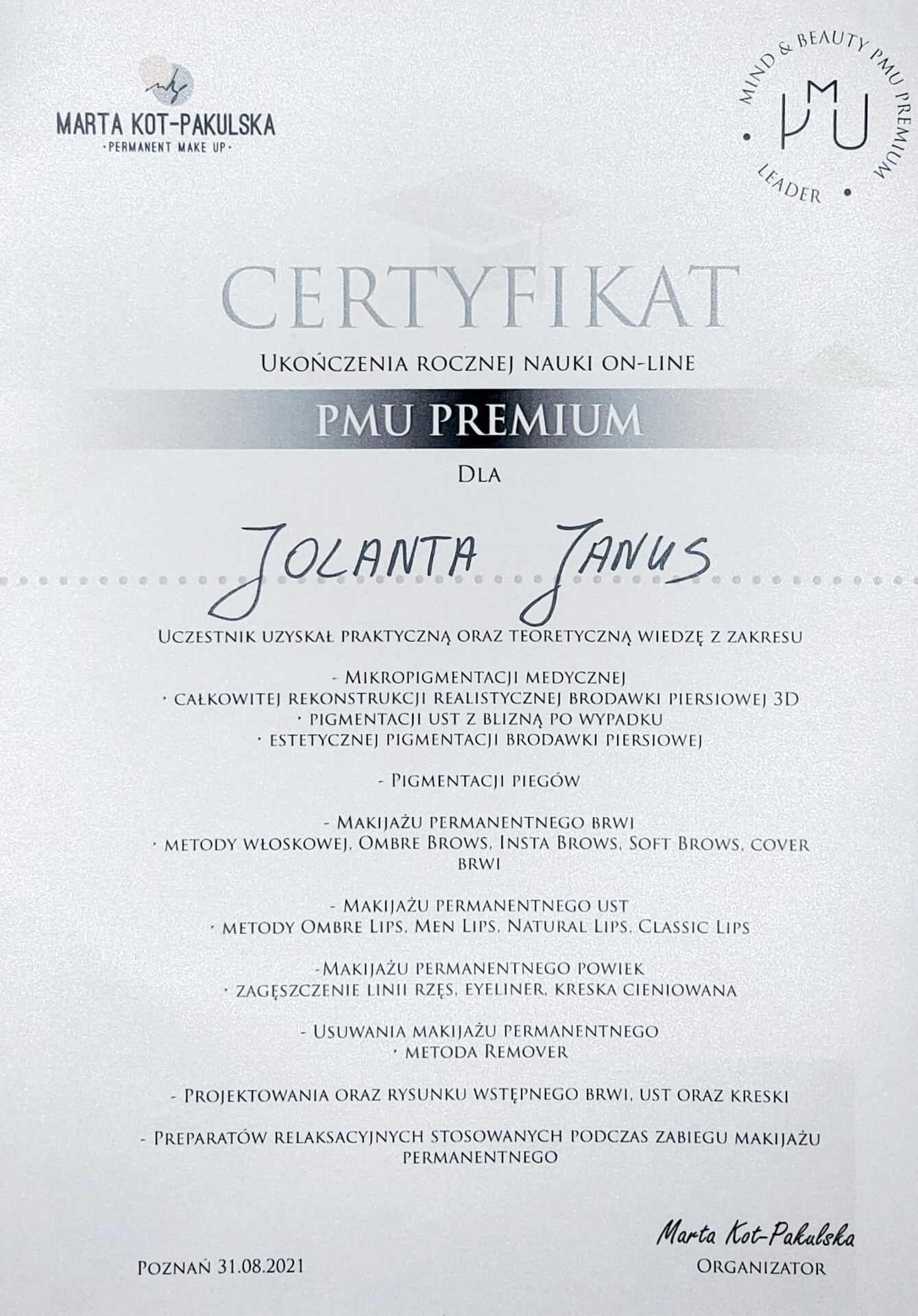 W roku 2021 zajęłam II miejsce na Mistrzostwach Online Mind & Buty PMU w kategorii Pmu Usta-Master.